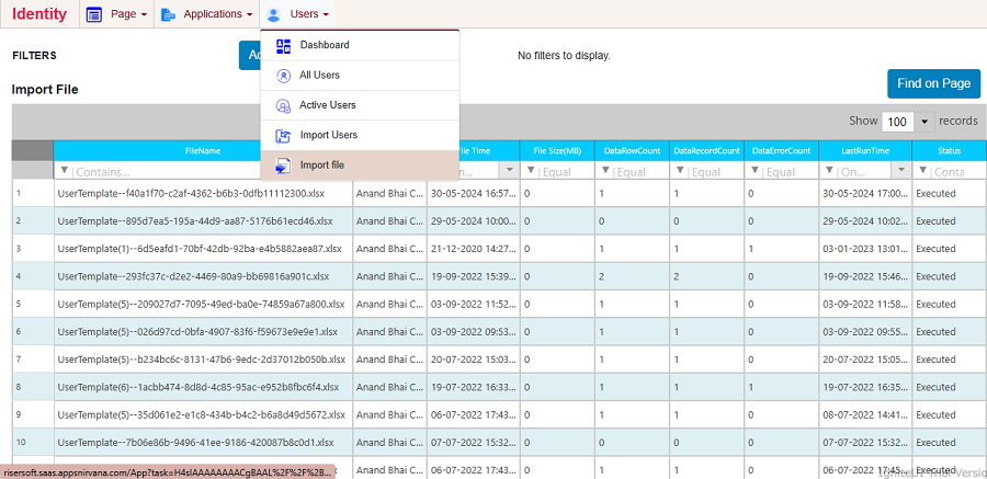 To see the listing of Import Users Files, click on Users Menu - > Import File.