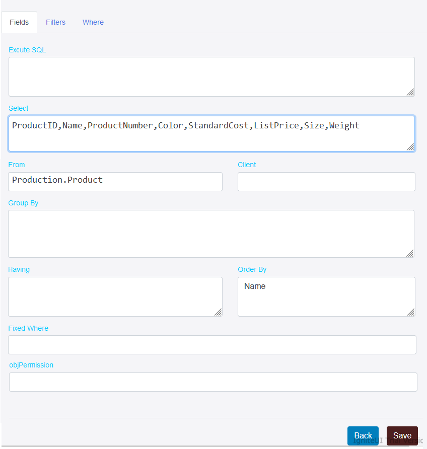 Fixed Where-> User can set fixed where conditions in this section.