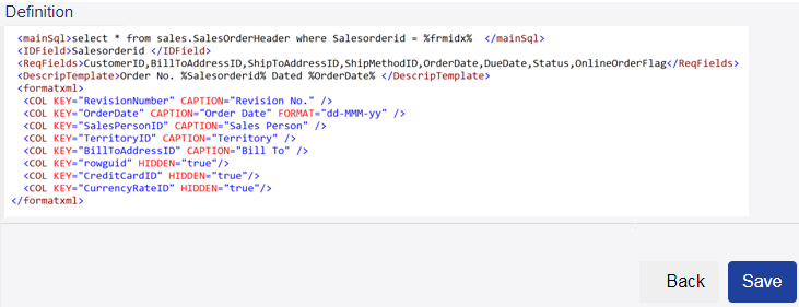 5.5 formatxml -> using this tag we formatting of visible columns and set caption for columns as per requirement.