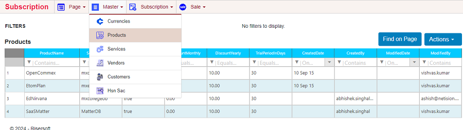 To create Currency, click on Master -> Product -> Actions -> New Product.